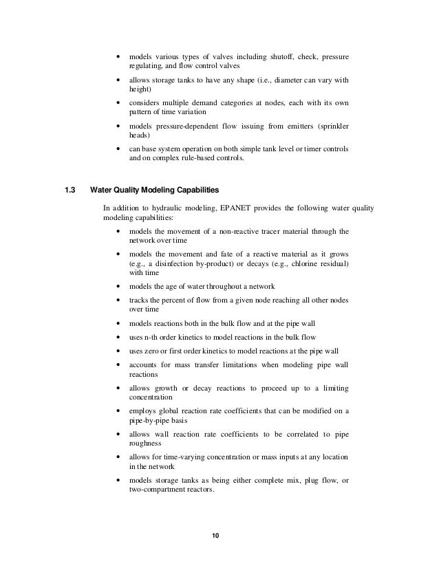 EPANET provides a fully equipped, extended-period hydraulic analysis package that can: